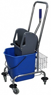 Габариты: 560×400×940 мм. Металлический хромированный каркас, сетка, пластиковое ведро.