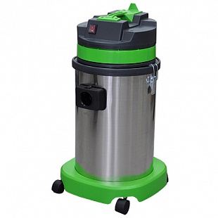 У этого однотурбинного пылесоса для сухой и влажной уборки - корпус из нержавеющей стали емкостью 30л. и диаметром 345мм. Бесшумный двигатель с большим сроком службы.